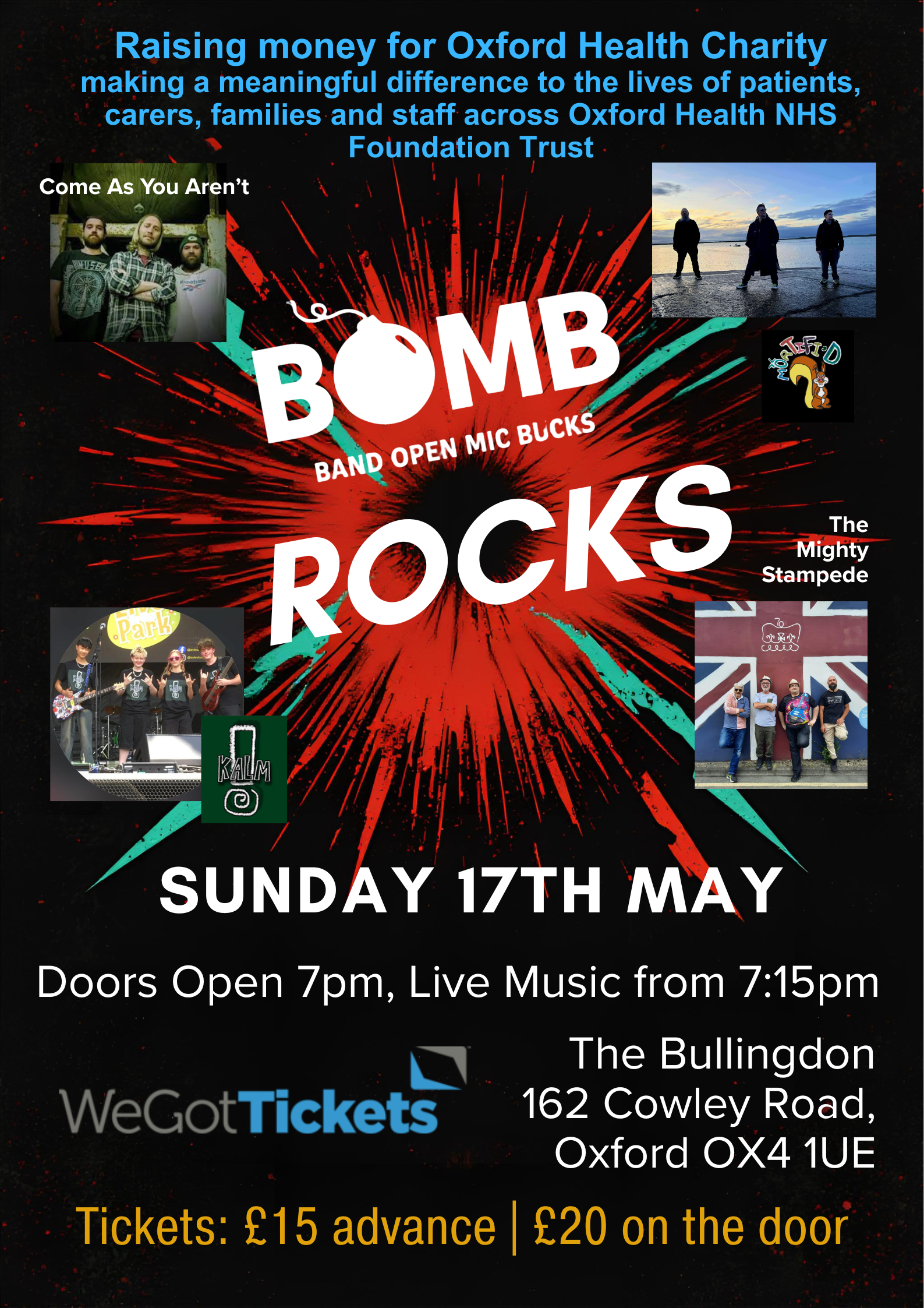 SUN, 17TH MAY 2026 Doors: 7:00 pm BOMB Rocks Charity Fundraiser for Oxford Health Charity The Mighty Stampede,